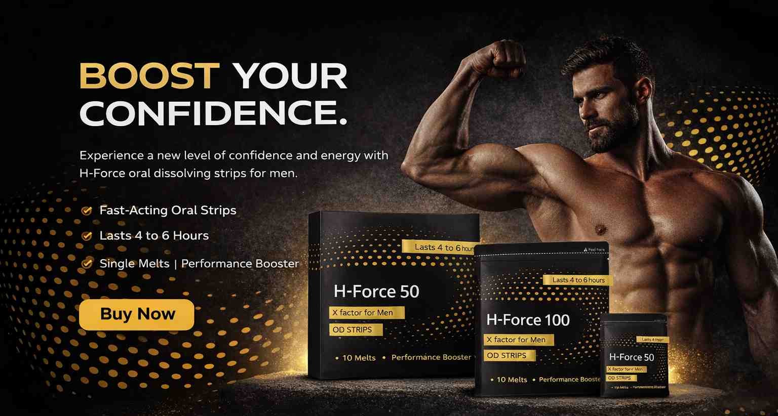 H-Force OD Strips are quickly dissolving oral strips designed to boost confidence and performance within minutes, lasting for hours. Just place the strip on your tongue and let it dissolve no water or pills needed.